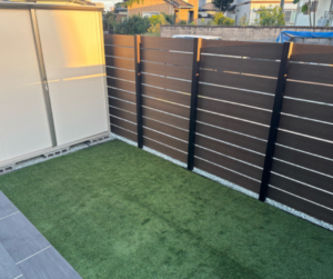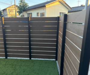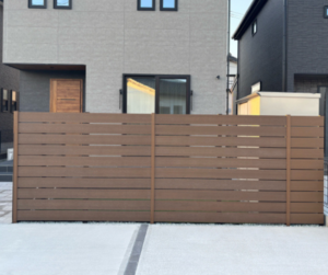木目調の目隠しフェンスが、外観との調和Good!