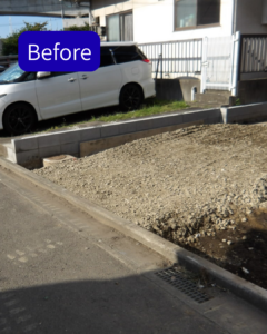 車の乗り入れをしやすいように歩道切下げ工事(24条工事)をおこないました。